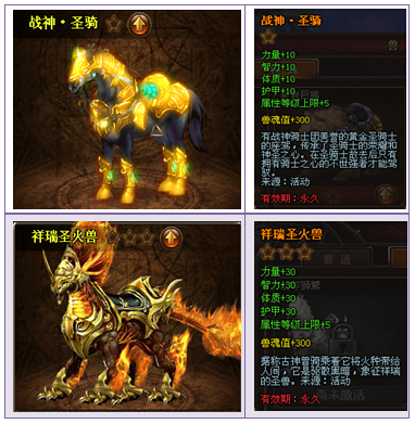 1. 相同坐骑只可激活一次,购买物品均为绑定;