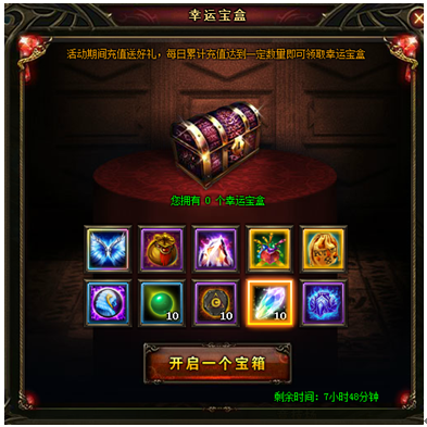 2. 充值金额与获得幸运宝盒数量,活动结束时清零, 奖励物品均为绑定;