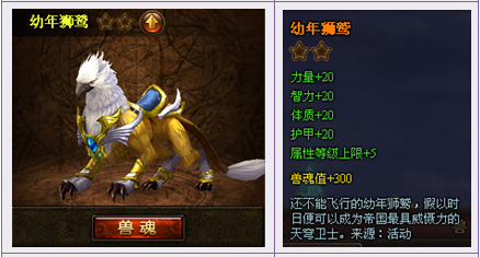 神兽碎片*150 | 幼年狮鹫卡*1(属性+20) 兽灵石*50 |