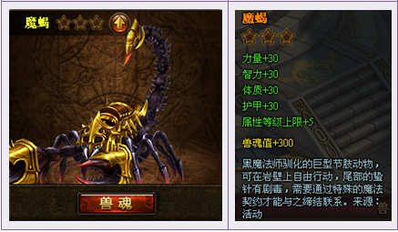 神兽碎片*200 | 魔蝎卡*1(属性+30) 兽灵石*50 |