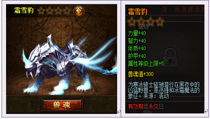 霜雪豹卡礼包② | 霜雪豹卡*1 兽灵石*50 | 5000钻 | |
