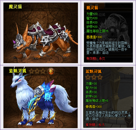 【活动内容】活动期间,商城上架稀有坐骑卡礼包。搭配兽灵石,价优礼更多。