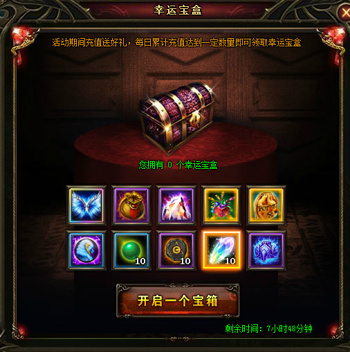 2. 充值金额与获得幸运宝盒,活动结束时清零;