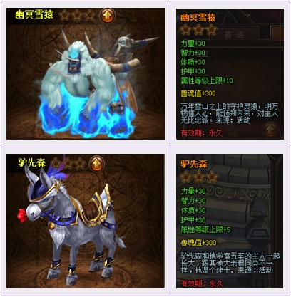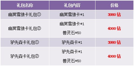 【活动内容】活动期间,商城上架稀有坐骑卡礼包。搭配兽灵石,价优礼更多。