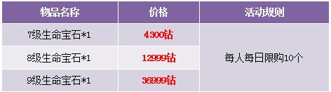 1. 宝石在商城“限时热卖区”出售,限时热卖区域中的道具仅限“钻石”购买;