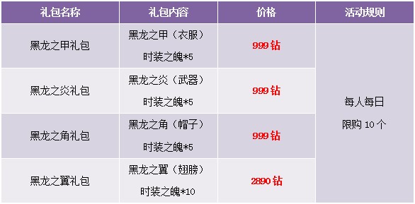 【活动内容】活动期间,商城首次上架黑龙系列。暗黑时装顶级装扮,威武霸气。