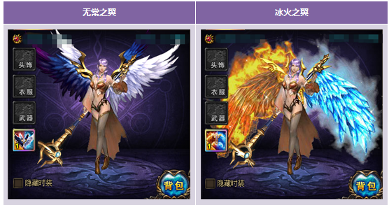 无常之翼礼包 | 冰火之翼*1 时装之魄*10 | 2890钻 | 每人每日 限购2个 |