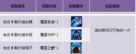 【活动内容】活动期间,合成5阶时装即可获得霜雪系列时装。冷艳酷炫,值得你拥有!