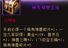 1. 购买稀有神兽宝箱开出物品、活动兑换物品均为绑定;