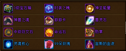圣魂石礼包 | 圣魂石*10 3~5级宝石箱*5 | 70钻 |