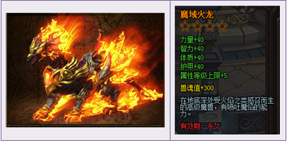 魔域火龙礼包① | 魔域火龙卡*1 | 4980钻 | 魔域火龙卡 属性+40 |