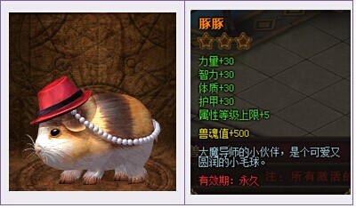 豚豚卡礼包① | 豚豚卡*1 | 3980钻 | 豚豚卡 属性+30 |