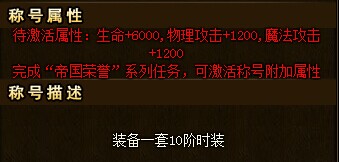 合成一套10、11、12阶时装装备后还能额外获得以下特殊称号: