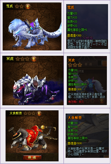 神兽碎片*250 | 冥虎卡*1(属性+30),兽灵石*50 |