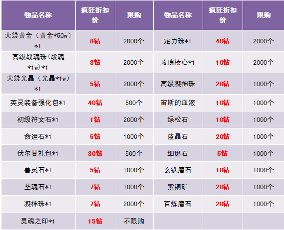 2.热卖商品仅在商城出售,仅限使用钻石购买,购买物品均为绑定。