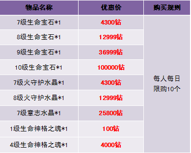 【活动内容】活动期间,商城上架高级宝石以及高级守护水晶。超强意志、抗性、高级宝石水晶等尊贵象征,让你即刻拥有至高无尚的荣耀与神秘力量。
