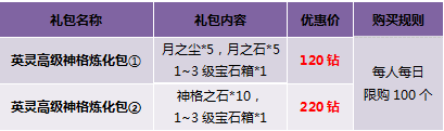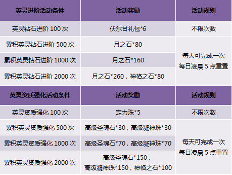 3. 英灵进阶活动仅限使用钻石培养,绑定钻石与圣魂石均不计算在内;