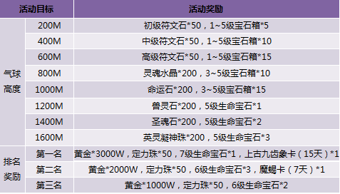 2. 活动结束后,上升高度排名前三的玩家可以获得额外奖励,奖励通过系统邮件发送;