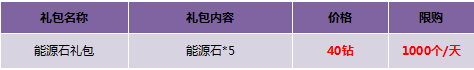 【活动内容】活动期间,商城限时出售“能源石礼包”,做任务达人更可以拿更多!