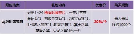2. 限时热卖区域中的道具仅限“钻石”购买, 购买物品均为绑定。