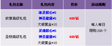 【活动内容】活动期间,商城首发子女战徽提升系列礼包。