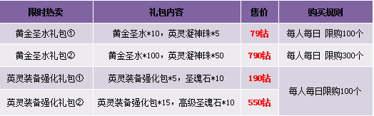【活动内容】活动期间,英灵神装铸造大礼包限时热卖,不容错过。