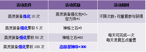 2. 英灵装备累积强化,每档每日可完成一次,活动每天凌晨五点重置;