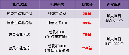 【活动内容】活动期间,商城上架神兽之蹄礼包。超值特价神兽之蹄,坐骑升星零距离。
