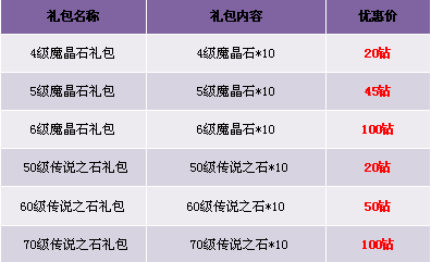 【活动内容】活动期间,限时促销制作50~70装备必须魔晶石和传说之石礼包!快制作装备助力快快升级。