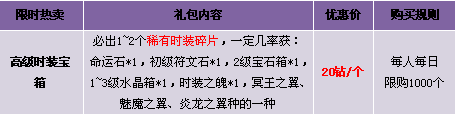 2. 限时热卖区域中的道具仅限“钻石”购买,购买物品、奖励物品均为绑定。