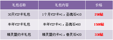 1. 礼包仅在VIP商城出售;