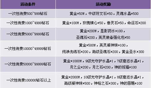 3. 有效消费定义:玩家所有消费钻石(不含拍卖行/绑定钻石)的行为都算作有效消费;
