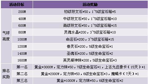 2. 活动结束后,上升高度排名前三的玩家可以获得额外奖励,奖励通过系统邮件发送;
