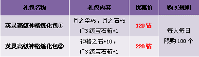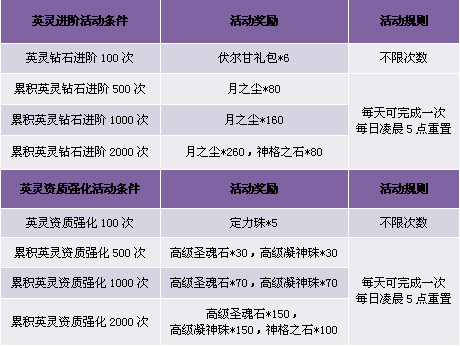 3. 英灵进阶活动仅限使用钻石培养,绑定钻石与圣魂石均不计算在内;