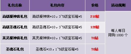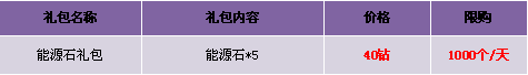 【活动内容】活动期间,商城限时出售“能源石礼包”,做任务达人更可以拿更多!