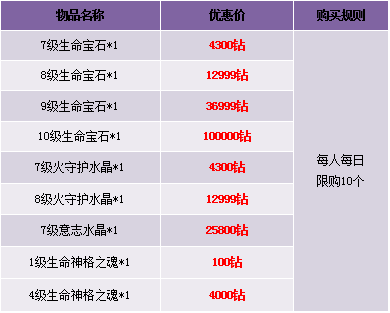 【活动内容】活动期间,商城上架高级宝石以及高级守护水晶。超强意志、抗性、高级宝石水晶等尊贵象征,让你即刻拥有至高无尚的荣耀与神秘力量。