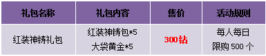 1. 礼包仅在商城“限时热卖”处出售,道具仅限“钻石”购买;