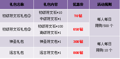 2. 礼包仅在商城“限时热卖”处出售;限时热卖区域中的道具仅限“钻石”购买;
