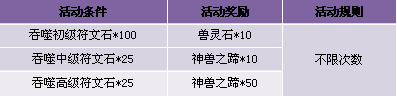 【活动内容】活动期间,商城上架诸多符文石道具,史无前例最具性价比,吞噬符文石,可获得相应奖励。