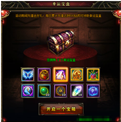 【活动内容】活动期间,累积充值500钻即可获得一个幸运宝盒。奖励内容挑战极限,样样值得拥有!