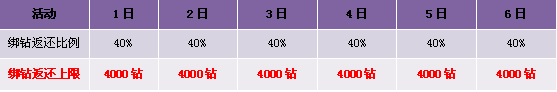 【活动内容】活动期间,玩家在当日消费的钻石按照一定比例返还玩家,返还的绑钻次日在游戏内领取。