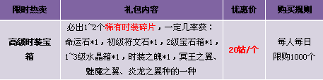 2. 限时热卖区域中的道具仅限“钻石”购买, 购买物品均为绑定。