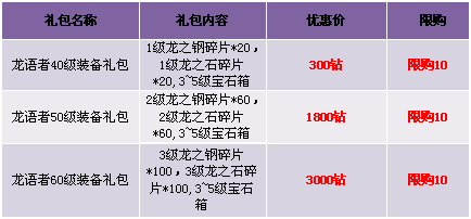 1. 礼包仅在商城“限时热卖”处出售,道具仅限“钻石”购买;