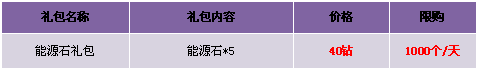 【活动内容】活动期间,商城限时出售“能源石礼包”,做任务达人更可以拿更多!