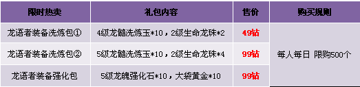 【活动内容】活动期间,龙语者装备大礼包限时热卖,不容错过。