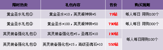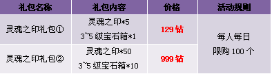 【活动内容】活动期间,商城热卖灵魂之印礼包。灵魂之印、宝石箱,限时限量打包出售。