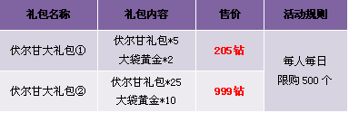 【活动内容】活动期间,伏尔甘礼包搭配大袋黄金特价出售,小伙伴们再也不用为神铸黄金不够发愁啦,赶快行动吧!