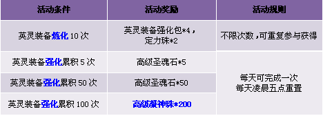 【活动内容】活动期间,炼化、强化英灵装备达到指定次数,即可获得相应奖励。铸就属于你的极品英灵装备,打造新一代英灵王中王。