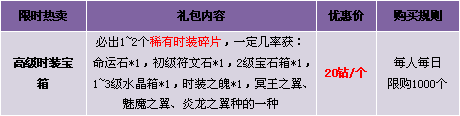 【活动内容】活动期间,商城上架子女装备提升系列礼包。