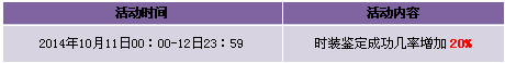 【活动内容】活动期间,商城上架时装之魄,时装鉴定成功几率增加20%,且以绑钻形式返还30%的鉴定费用。提战力好时机,时装鉴定轻松享受。